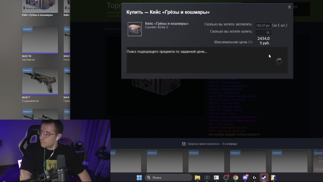Известный стример Дмитрий `Dmitry_Lixxx` Лиханов потратил свыше миллиона рублей на открытие кейсов «Грезы и кошмары» в Counter-Strike 2, надеясь выбить редкий нож. Весь процесс он транслировал в прямом эфире на Twitch.