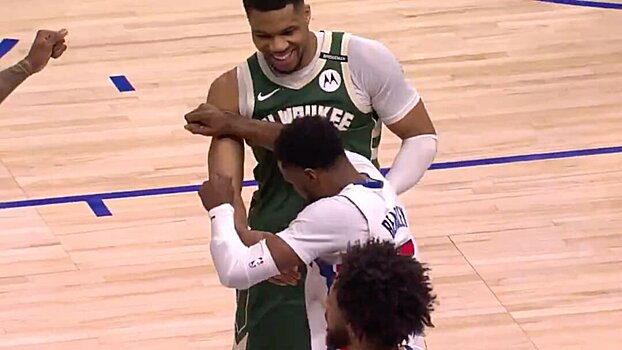 В последние секунды победного для «Бакс» матча со счетом 125-119, где Яннис Адетокунбо набрал 32 очка, 11 подборов и 15 передач, 2-метровый форвард заблокировал трехочковый бросок Малика Бизли, отправив того на паркет.